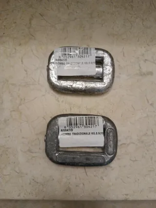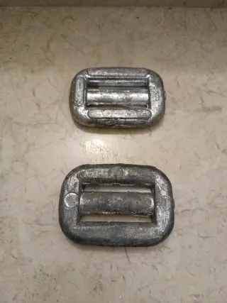 Dos pesas de plomo tradicionales para cinturón de buceo. - Cada pesa tiene un peso de 0.5 kg. - Ideales para equipamiento de submarinismo.