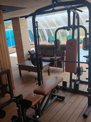 Banco de pesas multifuncional Optima plus G330. No pongo fotos porque lo tengo todo desmontado está nuevo. - Ideal para ejercicios de fuerza y entrenamiento. - Incluye instrucciones de montaje y uso en varios idiomas.