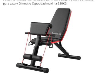 Banco de pesas versátil para entrenamientos en casa. Su diseño permite ajustar el respaldo para diferentes ejercicios. - Tapicería negra. - Estructura metálica. - Ruedas para transporte.