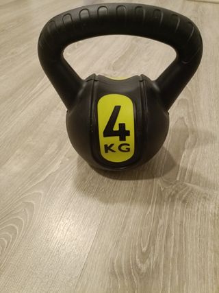 Pesa rusa de 4 kg, ideal para entrenamiento en casa. Está en perfecto estado. - Kettlebell de 4 kilogramos. - Color negro y amarillo.