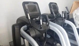 Elíptica LifeFitness FlexStrider en color negro y gris. Ideales para entrenamiento cardiovascular completo con paso variable y movimiento fluido. Estructura muy robusta y estable, diseño moderno, pantalla con TV y conexión a Internet. Datos técnicos: • Zancada variable: 0–91 cm • 26 niveles de resistencia • Peso máquina: aprox. 256 kg • Peso máximo usuario: 181 kg • Dimensiones aprox.: 260×86×171 cm • Pedales antideslizantes sobredimensionados • Movimiento estable y muy suave • Consola avanzada con WiFi + TV + multimedia