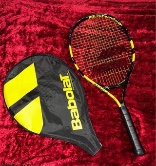 Raqueta de tenis Babolat Nadal Junior. - Tamaño: 23 pulgadas. - Peso: 215 gramos. - Incluye funda protectora Babolat.