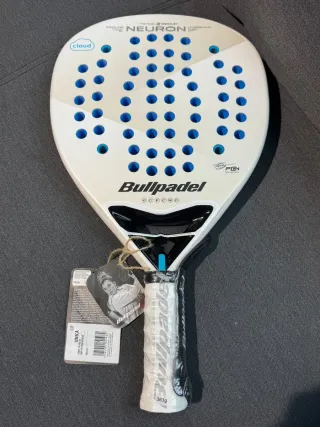Pala de pádel Bullpadel Neuron Cloud, completamente nueva y precintada. - Modelo: Neuron Cloud. - Marca: Bullpadel. - Color: Blanco con detalles azules. - Peso: 363g.