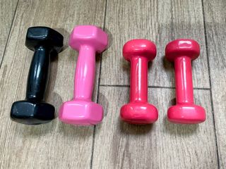 Conjunto de pesas para entrenamiento en casa. - Un par de pesas de 2kg cada una. - Un par de pesas de 1kg cada una. - Color rosa y negro.