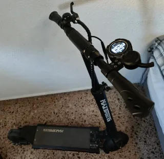 Patinete eléctrico en buen estado, listo para usar. - Manillar con puños texturizados. - Freno de mano. - Timbre plateado.