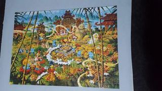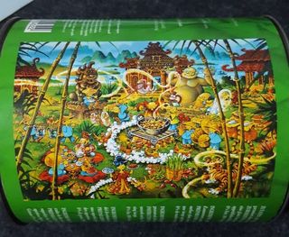 Puzle de 500 piezas, completo, como se ve en las fotos. Medidas hecho: 34x48 cm. Medidas de la lata: 13 cm de alto, 11 cm de diámetro. Peso: 213 gramos Impresión exquisita, ajuste perfecto de las piezas, cada una queda firmemente conectada, con diferentes formas. Título: Peckin Duck (del dibujante alemán Michael Ryba), clásicos de los dibujos animados, con una bonita ilustración con temática asiática, con imágenes de la selva. Ideal para los amantes de los puzles, coleccionistas, personas que les gustan los dibujos y que aceptan retos. Es un puzle raro y difícil de encontrar, que la marca Heye fabricó en el año 2001. Hago envíos.
