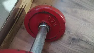 Se venden 3 barras para discos de pesas de 28mm Las mancuernas son de 38 cm y pesa 2kg cada una La barra grande es de 120cm y pesa 6kg Incluyen los prisioneros para los discos - Diseño: Superficie texturizada para un mejor agarre.