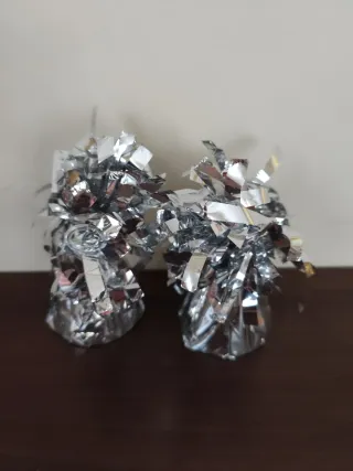 Pesas decorativas plateadas para mantener lao globos de helio en su sitio. El kit de 12 unidades 5 euros.el precio NO es NEGOCIABLE