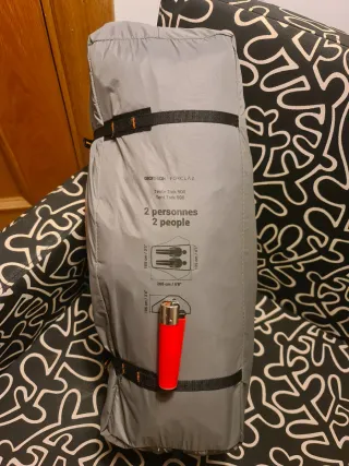 Vendo tienda compacta de trekking "Forclaz Trek 900" (2 personas), el tope de gama técnica de Decathlon en ligereza y resistencia (1,95 kg peso/ 5,3 L volúmen). Medidas en foto. COMO NUEVA! Solo 1 uso real. Ni 1 mancha y todo en perfecto estado. Cuidada y guardada escrupulosamente. Las piquetas están perfectas (ver foto), lo que demuestra que está nueva. Idéntica a la MT900: Es estructuralmente el mismo modelo que la MT900 que se vende ahora mismo por 249,99€. Solo cambió el nombre del modelo. Diseño Autoportante (domo), 2 puertas, 2 ábsides y montaje ultra rápido. Repuestos compatibles disponibles. ¡Ahorra 80€ respecto a nueva!