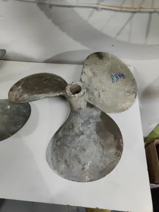 Dos hélices de bronce, ideales para embarcaciones. Muestran marcas de uso y el paso del tiempo. - Material: Bronce - Peso aproximado: 6.6 kg y 8.8 kg