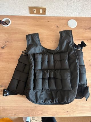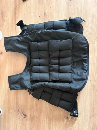 Chaleco lastrado diseñado para entrenamiento de calistenia. - Color negro. - Cierre ajustable con hebillas. - 20 pesos de 0,5 kg (10kg en total)