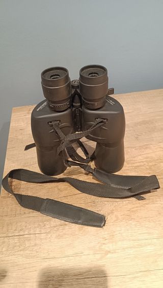 Prismáticos de marca Bresser, modelo: Spezial Zoomar. En buen estado. Incluye su funda original. Características: Diámetro objetivo: 50 mm Aumento: 35x max, 7-35x zoom Campo de visión a 1000 m: 66 m Intensidad luminosa: 51,02-2 Factor crepuscular: 18,71-41,80 Pupila de salida: 17,1 a 1,4 Dimensiones: 202x63x200 mm Peso: 0.961 kg