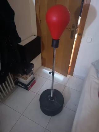 Saco de boxeo de color rojo con base para entrenamiento. - Altura ajustable. - Base redonda y pesada para mayor estabilidad. - Material resistente.