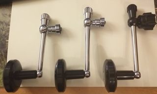 Manivelas para carretes de pesca Mitchell. - Modelos compatibles: 386, 396, 486, 488, 496, 498, 498X y para los modelos PRO. Tambien las tengo usadas (consultarme precios) - Diseño metálico y de plástico negro o pomo de madera en los modelos PRO. **Precios a partir de 16,99 euros para las manivelas, dependiendo modelo y estado**