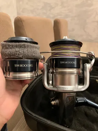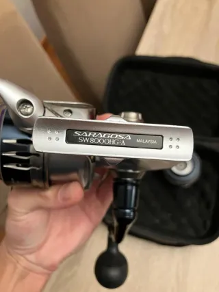 Carrete Shimano Saragosa SW A 8000HG (Con 2 bobinas cargadas de trenzado) 8000 y 14000 Carrete robusto y confiable, diseñado para pesca en agua salada. Cuenta con gran potencia de arrastre, recuperación rápida (HG) y excelente suavidad. Ideal para spinning pesado y jigging. Muy buen estado y listo para pescar.