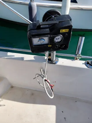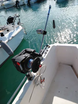 Carrete eléctrico para pesca. - Incluye contador digital. - Montado sobre caña. - Bobina con hilo multicolor.