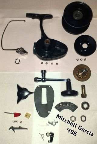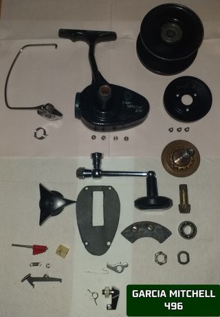 Piezas de recambio para carrete de pesca Mitchell Garcia 496. Totalmente revisadas y en perfecto estado para su uso. - Cuerpo principal del carrete. - Bobina. - Manivela. - Engranajes. - Rodamientos. - Tapon de freno. - Arco del pick-up - Tornilleria. - Antiretroceso completo. - etc. etc. - Aconsejo ver todas las fotos. - GARCIA MITCHELL 496- MITCHELL 496--