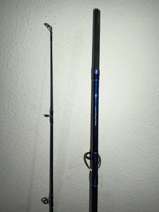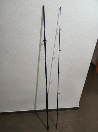 Caña de pescar 180cm nueva solo he abierto el paquete del carrete para meterle hilo ( la doy con trenzado del 0,47, 200m) - Mango de espuma negra. - Carrete XSIX azul. 16 kg de resistencia . ideal para embarcación Caña sola 50€ Carrete suelto 50€ Si se lo llevan junto 70€