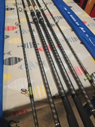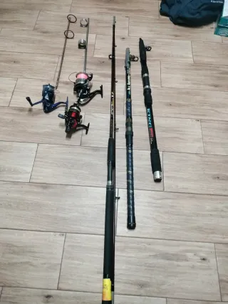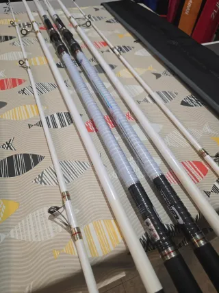 Se vende lote de 3 cañas de pescar y 3 carretes. También por separado conjunto caña y carrete. - Cañas para pesca de fondo y jigging. - Marcas: Shimano, Daiwa, Okuma