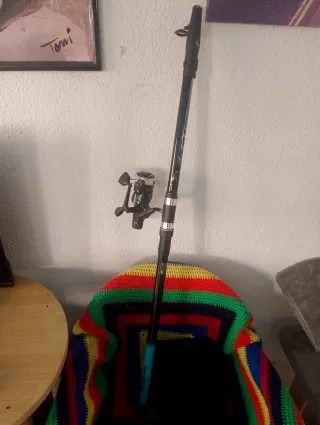 Caña de pescar completa, lista para usar. - Caña de pescar negra, goma espuma dañada como se ve en la foto, por el sitio donde estaba guardada - Carrete de pesca usada 4 veces NO CAMBIO