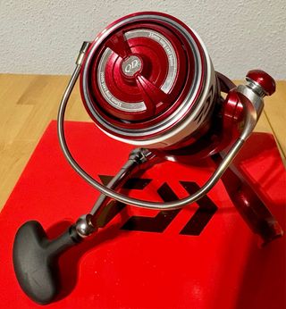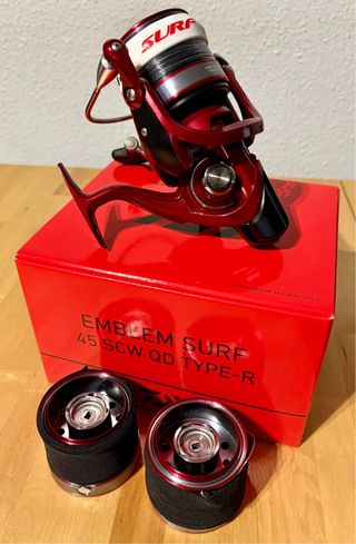 Carrete de pesca Daiwa Emblem Surf 35 SCW QD Type R en color rojo. - Modelo nuevo 2023 - En perfectas condiciones, muy cuidado y siempre endulzado después de cada uso - Modelo: Emblem Surf 35 SCW QD Type R - Color: Rojo - Incluye 2 bobinas adicionales. - Se vende sin hilo y sin cinta - Las 2 bobinas adicionales también se venden sin hilo y sin cubre bobinas