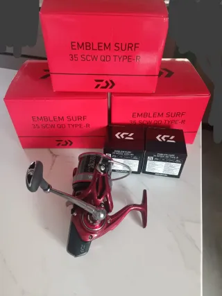 Carrete de pesca Daiwa Emblem Surf 35 SCW QD Type-R. -Ganados en sorteo, nuevos a estrenar, cada uno con 3 bobinas - Color rojo. - Modelo 35 SCW QD TYPE-R.