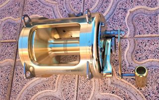 Carrete de pesca para curricán, ideal para pesca deportiva en alta mar.Carrete nuevo de 80 W de una velocidad - Color dorado brillante. - Construcción robusta para grandes capturas.