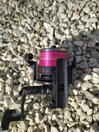 Carrete de pesca versátil, adecuado para spinning, eging o rock fishing. Su diseño plateado y compacto lo hace ideal para diversas técnicas de pesca. - Cuerpo metálico brillante. - Bobina con hilo rosa. - Manivela ergonómica.