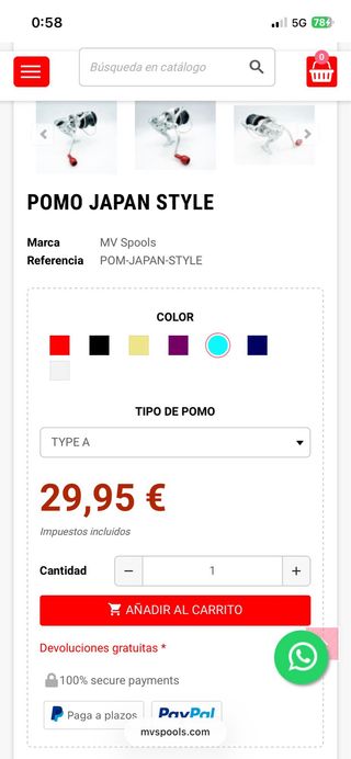 Dos pomos para carretes de pesca, estilo Japan. - Color azul brillante. - Diseño Japan Style. - Marca MV SPOOLS. shimano pesca surfcasting daiwa kali kunnan yuki