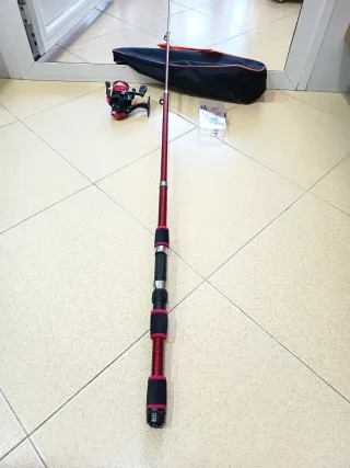 Se vende caña de pescar de 1.80 metros junto con su carrete. - Caña de pescar de 1.80m. - Carrete de pesca. - Bolsa de transporte. - Accesorios de pesca.