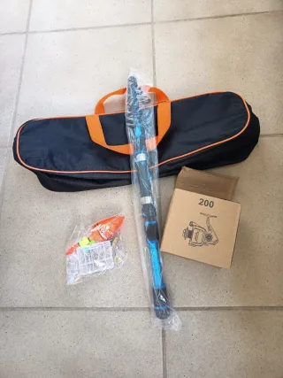 Conjunto de pesca completo, ideal para iniciarse o para tener un equipo adicional. Incluye caña, carrete y funda. Perfecto para 🎁 - Caña de pescar de 2.10 metros. - Carrete de pesca. - Funda de transporte.