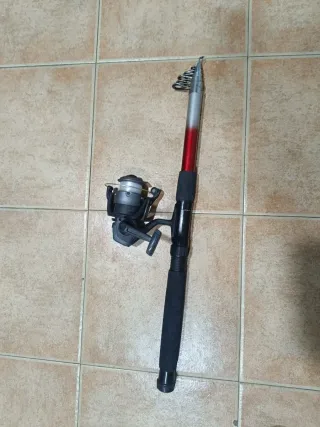 LIQUIDACION RESERVA : Caña de pescar telescópica La caña de pescar telescópica permite un almacenamiento fácil lo que la hace perfecta para viajar. • Carrete giratorio:El carrete giratorio garantiza una recuperación suave y eficiente de su captura. • Carrete de línea de aleación de aluminio:El carrete de línea de aleación de aluminio es ligero y duradero, proporcionando un excelente rendimiento durante la pesca. • Kit completo:Este kit completo incluye todo lo que necesita para un viaje de pesca exitoso, lo que lo convierte en una gran relación calidad-precio. • :La caña de pescar telescópica se despliega a 1.80 m