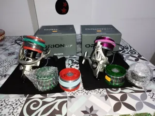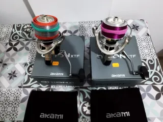 Se venden dos carretes de pesca Akami Orion XTF, ideales para la pesca deportiva. Incluyen 3 bolsas cada uno