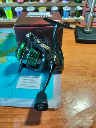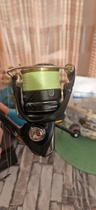 Carrete de pesca Shimano HG 2500 con hilo verde. - Modelo HG 2500. - Hilo de color verde.
