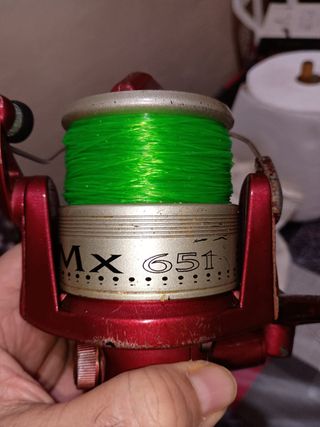 Carrete de pesca Okuma MX 651 con hilo verde. - Modelo: MX 651 - Marca: Okuma - Hilo de pesca de color verde.