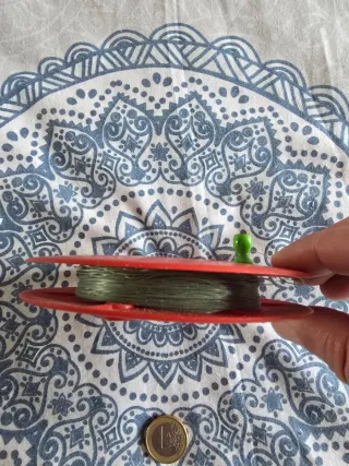 Carrete de pesca vintage, fabricado en plástico rígido de color rojo. Diseño sencillo y clásico, con eje central metálico y guía lateral para el hilo. Presenta marcas normales de uso y del paso del tiempo, propias de un artículo antiguo, pero se conserva íntegro y funcional. Ideal para coleccionistas, pesca tradicional o como repuesto antiguo. Gracias por echarle un ojo, si necesitas algo más me dices. Se vende tal cual se ve en las fotos, el euro no va incluido 😁 es sólo para referencia del tamaño. Tengo buenas valoraciones y respondo rápido. Suelo enviar el mismo día si me cuadra.