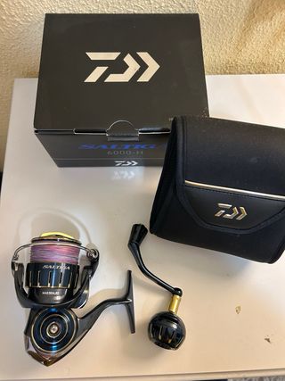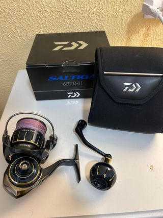 Carrete de pesca Daiwa Saltiga 6000H, ideal para pesca deportiva. - Modelo: Saltiga 6000H - Marca: Daiwa - Incluye funda protectora - Caja original
