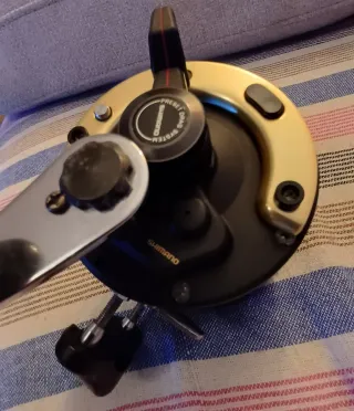 Carrete de pesca Okuma SD 55W con sedal azul. - Diseño en color negro y dorado. - Modelo SD 55W. - usado pero funcionando correctamente - le falta un tornillo del acople, se ve en las fotos Valencia capital