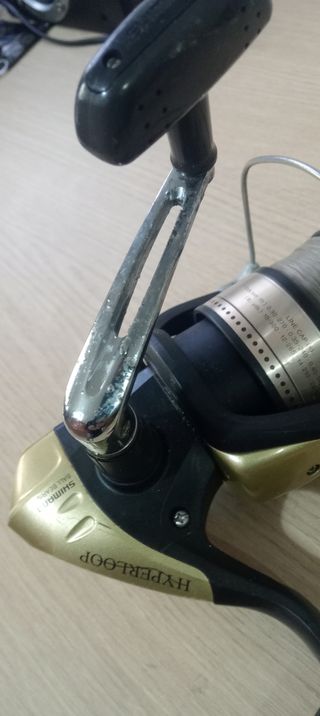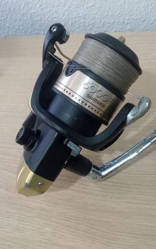 Carrete de pesca Shimano 6000FB. Poco usado, aunque presenta ligeros desconchados del niquelado en la palanca por exposición al ambiente marino. Funciona muy fino, bloqueo , invesor giro, etc. Con línea 0,35 en buen estado. Entrego en mano en Valencia CP_46015, no hago envíos y no es negociable