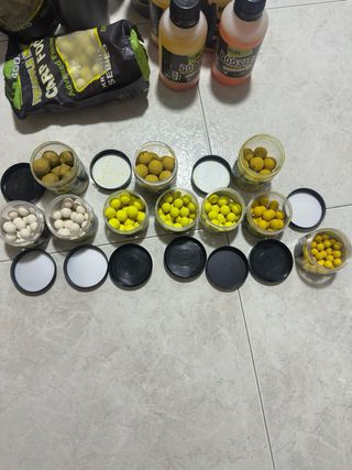 Lote de cebos para carpfishing. - Varios cubos con diferentes tipos de cebos. - Ideal para la pesca de carpas.