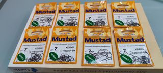 Lote de anzuelos de la prestigiosa casa MUSTAD especial competición del Nº7. Fabricados en carbono de máxima calidad con la fiabilidad que nos tiene acostumbrados está casa, de uno de los anzuelos más vendidos para competiciones mar costa en la modalidad de Surfcasting, ultra resistentes y muy finos y afilados, con un diseño extraordinario para la pesca con los cebos más exigentes como la lombriz. Afilado chemically sharpened. LOTE COMPUESTO DE: X8 Sobres de MUSTAD modelo "KEIRYU" 25uni por sobre. Precio por lote completo de 8 sobres.