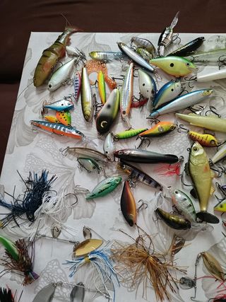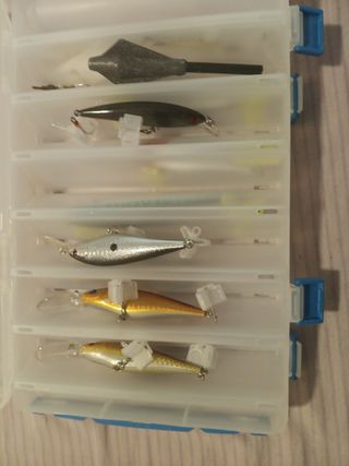 Los señuelos vienen en una caja organizadora. Doble cara - - 4 Cajas organizadora de plástico. Cajas de sueños doble cara Caja portta cebos Alicates múltiples usos con funda 39 señuelos de diferentes tamaños colores YODO NUEVO SIN USAR