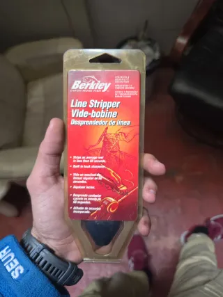 Herramienta Berkley para retirar sedal de carretes de pesca. - Saca sedal de un carrete promedio en menos de 60 segundos. - Incorpora afilador de anzuelos. - Modelo: Line Stripper Vide-bobine.