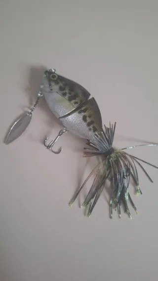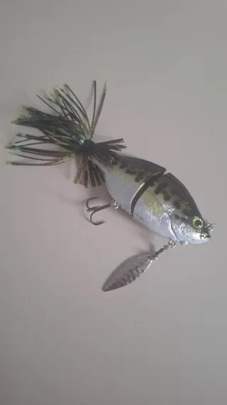Señuelo de pesca tipo buzzbait con un diseño llamativo. - Cuerpo plateado con detalles azules. - Falda de silicona en blanco y azul. - Anzuelo de pesca integrado. No leer; Rapala, osp, cranckbait, jerkbait, molix, shimano, daiwa, yo-zuri, megabass, deladande, hart, savagegear, rudra, storm, luckycraft, deps, sebile, sawamura, gancraft, imakatsu, jackall, swimbait. pesca. bass. blackbass, lucio. señuelo de pesca. raid.spinning.