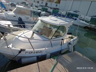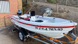 Barco para pesca o paseo Modelo fibrespot ocre 5,75, motor Mercury 80cv, como nuevo.100 horas aún con garantía oficial Revisión hecha noviembre 25, patente y revisión de motor, en casa oficial Con Potter Garmin nueva ,y otra sonda también funciona perfectamente, con las cartas del Mediterráneo y bastantes buenos puntos de pesca Se entrega con el material de seguridad y línea de fondeo