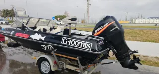 Barca de pesca deportiva lista para usar. - Motor Mercury. - Asientos cómodos. - Volante y consola. - Asiento giratorio. - Soporte para cañas. - Remolque con rueda de repuesto y ruedas jockey - Material polimero duro a prueba de bomba - Dos sondas