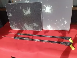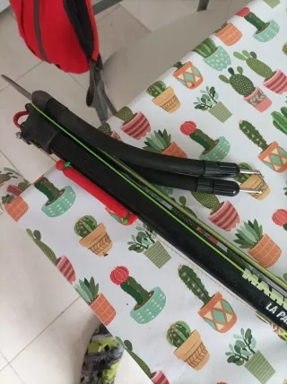 Conjunto de equipo para pesca submarina con 3 usos,lo vendo por no tener tiempo para dedicarle si quieres ver más fotos video o simplemente negociar escríbeme sin compromiso. (Todo se compró nuevo el 8 de septiembre de 2025) - Traje de neopreno de la marca spetton de 7 mm de la talla M. - Pantalón de neopreno a juego con el traje también de la marca spetton de 7mm,talla M. - Aletas de pesca submarina marca spetton talla 41/42 - Fusil de pesca submarina spetton de 82 cm e una goma. - Cuchillo de pesca submarina estlete marca spetton. - Guantes de pesca submarina talla M - Escarpines de neopreno talla M - Boya de señalización