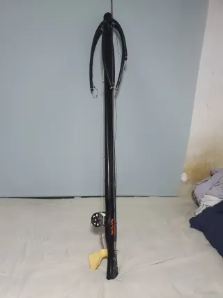 Fusil de pesca submarina de la marca Picasso. - Longitud 110cm - Varilla 130cm sin estrenar - Cañón de aluminio - Carrete de carbono - Gomas Cressi sin estrenar Preparado por Pepe Viña