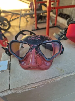 Máscara de buceo para apnea y pesca submarina. Diseñada para ofrecer un ajuste cómodo y seguro. - Diseño de bajo volumen. - Cristal templado. - Correa ajustable. Utilizada 1 vez.