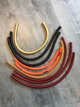 Gomas tirantes para fusil de pesca submarina. Son de diferentes colores y grosores. Totalmente nuevas, sin uso. Perfecto estado. - Fabricante: Primeline (USA), calidad inmejorable. - Incluyen 10 gomas en total, dos más que la que aparece en las imágenes. - Colores: rojo, negro, ambar y dorado. - Diversos grosores. - Se encuentran en perfecto estado de uso. Rojas: 16mm x 64cm: 12€ 14mm x 60cm: 12€ ... Naranjas C4: 16mm x 48cm: 10€ 16mm x 87cm: 20€ 14mm x 41cm: 10€ ... Negras 18mm x 64cm: 12€ 16mm x 64cm: 12€ ... Gold 16mm x 60cm: 12€ ... Ambar 16mm x 63cm: 12€ ... Precio Total: 110€